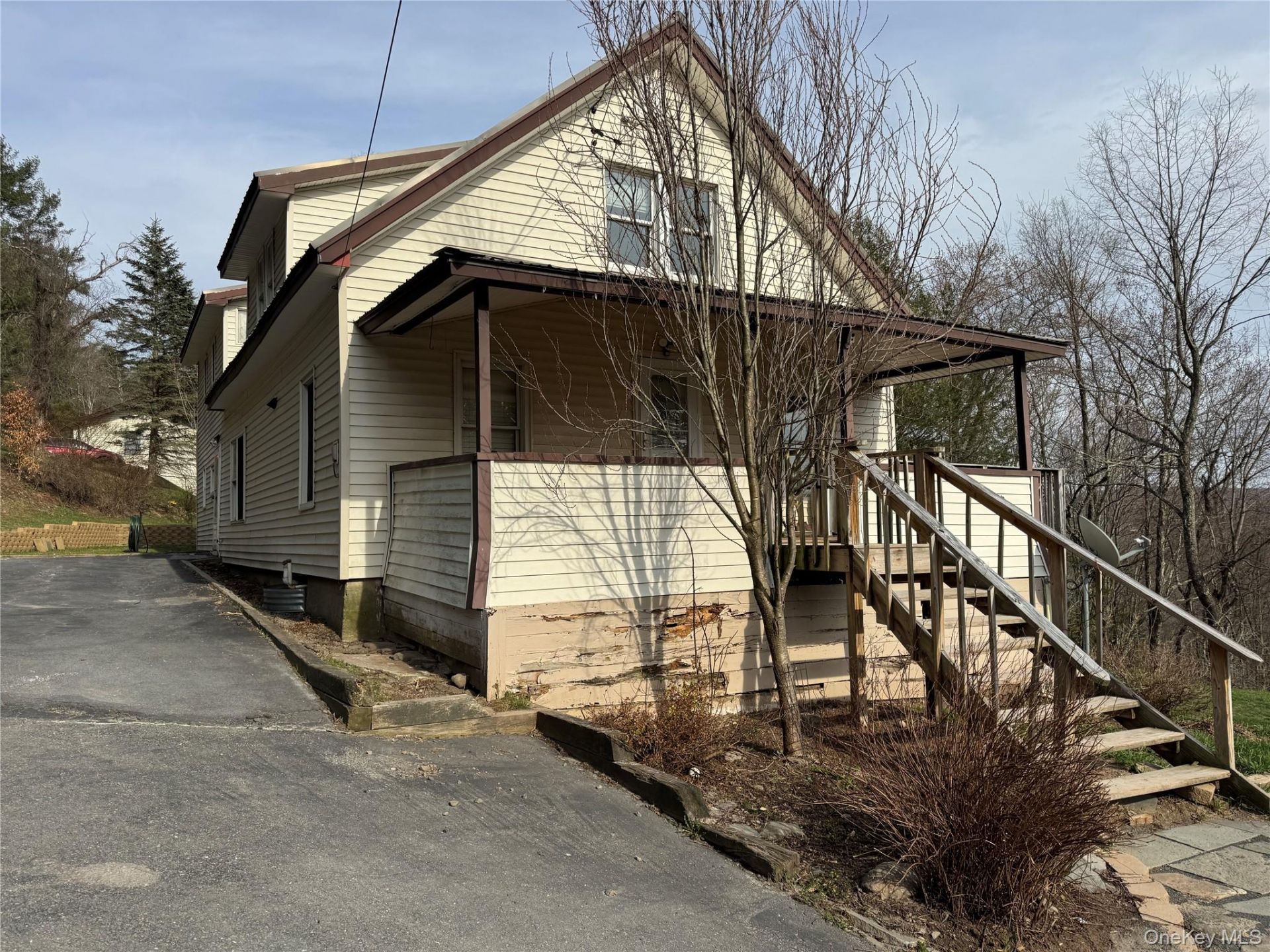 Charming Cape-Style Home with Mountain Views in Livingston Manor - Opportunity to Add Value! Originally built in 1948 and expanded with a major renovation in 2001, this 4-bedroom, 3 full bath home offers a spacious and versatile layout with great bones and strong upside potential. The addition features an oversized living room with a cozy wood stove and custom wet bar, along with a second-floor primary suite complete with full bath and walk-in closet. The kitchen offers ample counter space, while the dining area opens through sliding glass doors to a large rear deck-perfect for entertaining or enjoying the scenic surroundings. Hardwood floors run throughout much of the home, and key updates including vinyl siding, a metal roof, and insulated windows provide a solid foundation for future improvements. Set on .58 acres with 291 feet of road frontage, the property offers attractive distant mountain views, a circular driveway, covered front porch, and generous outdoor space.Located less than one mile from Main Street Livingston Manor-an easy walk or quick drive-this home places you near one of the Catskills' most sought-after destinations. Enjoy local shops, restaurants, breweries, and year-round events, along with world-class trout fishing on the nearby Willowemoc and Beaverkill Rivers, plus endless hiking and outdoor recreation. This is an estate sale being sold as-is. While the home would benefit from cosmetic updates and some repairs, it is currently livable and presents a fantastic opportunity for buyers to add value, personalize, and create their ideal Catskills retreat. A rare chance to invest in a prime location with strong potential!